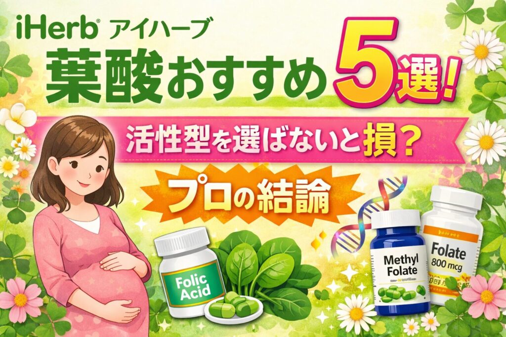 アイハーブの葉酸選びで失敗したくないなら、日本人の体質でもしっかり吸収される**「活性型」**一択です。元ナースが10年の愛用歴から、つわりでも飲める超小粒やコスパ最強品など、本当に飲むべき5本を厳選。後悔しない妊活準備を今すぐ始めましょう。