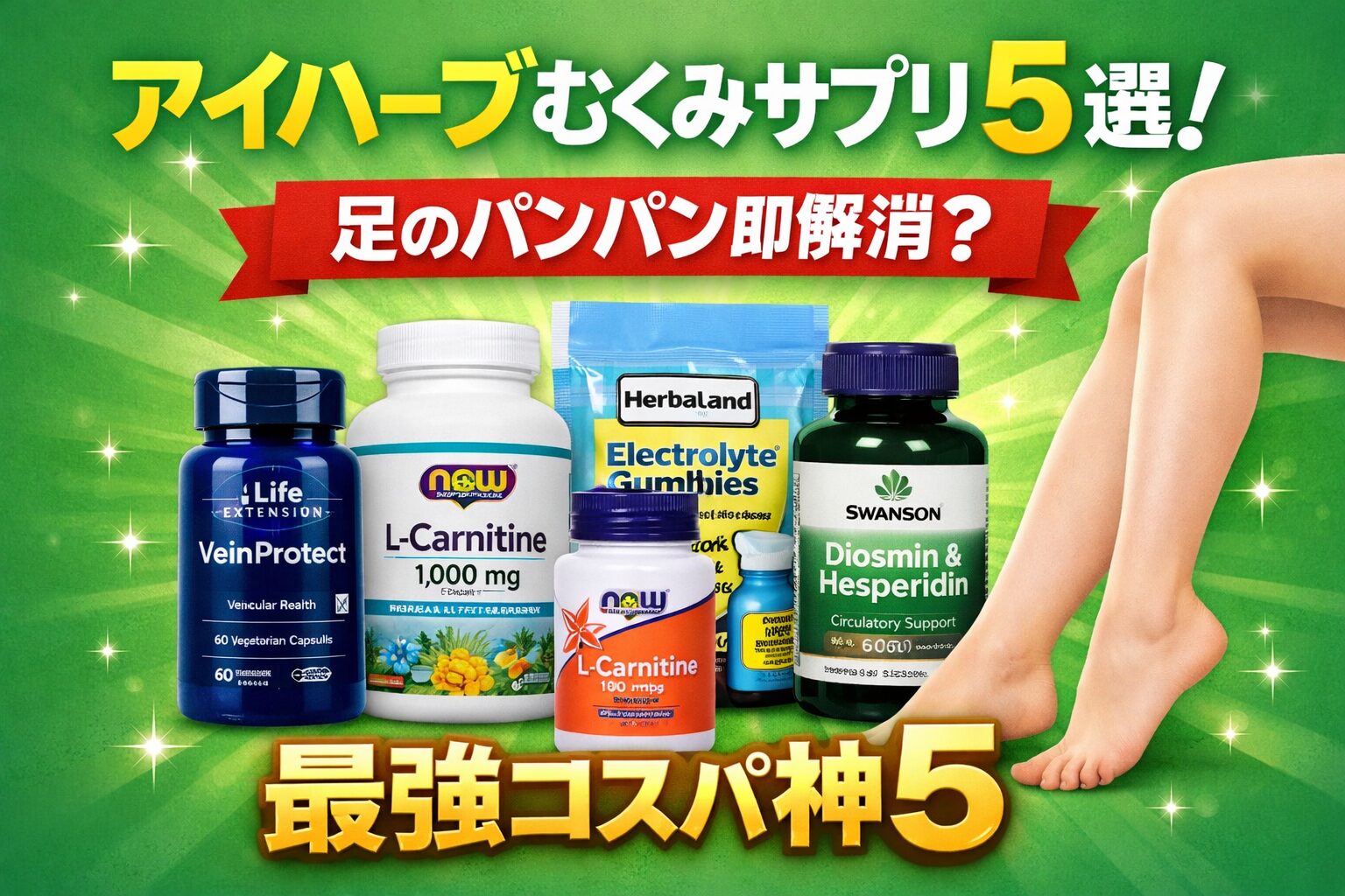 そこで、10年以上アイハーブを愛用し、成分やコスパに厳しい目を持つプロの視点から、本当におすすめできる「むくみ対策サプリ」を5つに厳選しました。