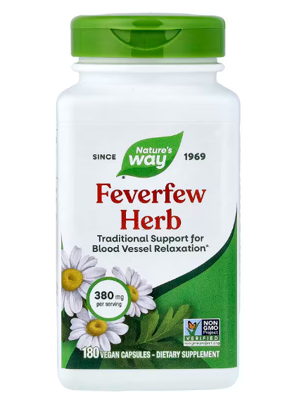 フィーバーフュー欧米で伝統的に使われるハーブ。痛みの原因物質をブロック。自然由来の成分で、痛みの頻度を減らしたい方Nature's Way フィーバーフュー葉(180粒入りがお得!)