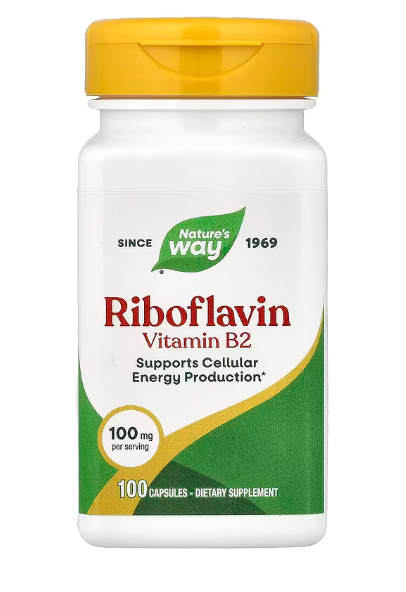 ビタミンB2細胞のエネルギー代謝を助け、脳の過敏さを抑えるサポート。気圧の変化や生理周期(PMS)で頭痛が起きやすい方Nature's Way ビタミンB2 100mg(Riboflavin)