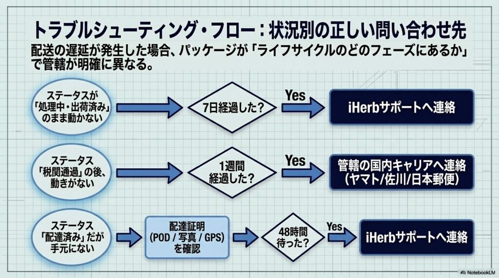 追跡画面が「通関」や「配送中」のまま数日間動かないと不安になりますよね。