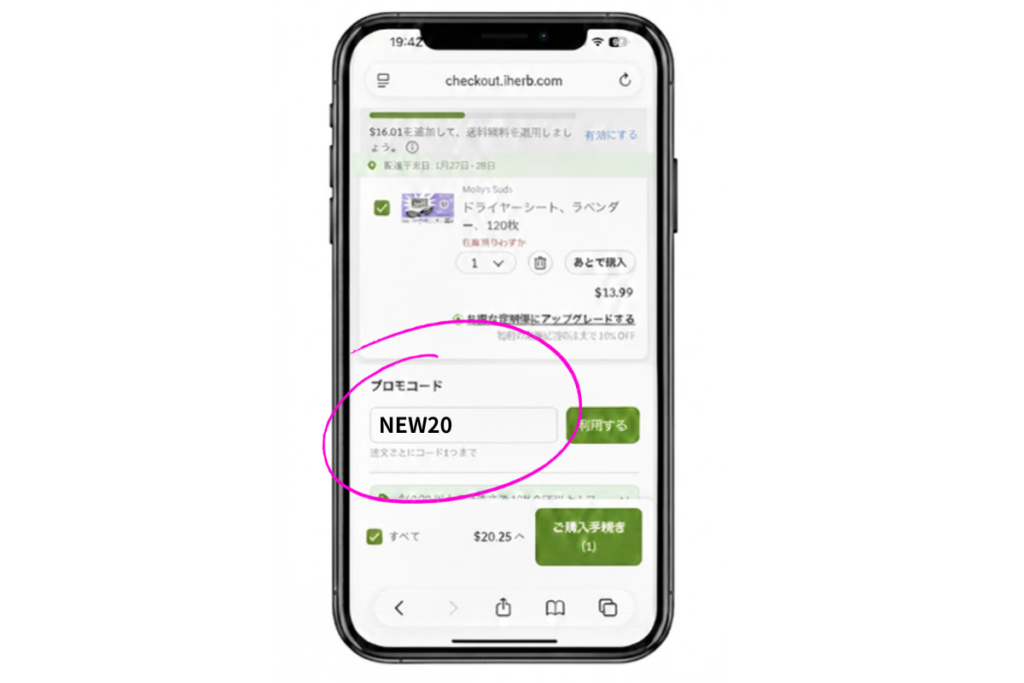 初めてアイハーブを利用するなら、初回限定のプロモコード「NEW20」が最もお得です。